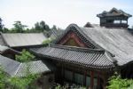 一、屋頂 屋頂最上方為一條橫向的屋脊,稱為正脊. 較大的殿宇的正脊兩端有鴟吻(鴟尾、龍吻). 垂(斜)脊的外端(檐角一端)排列著一系列脊飾,最外面是若干個小動物稱為蹲獸,最后面龍頭狀的,稱為垂獸。 中國古代建筑的屋頂可分為廡殿式頂、歇山式頂、懸山式頂、硬山式頂、攢尖式頂和錄頂等形式。按屋檐的層數分,廡殿頂、歇山頂和攢尖頂又分為單檐和重檐兩種。歇山式、懸山式和硬山式又分出一種沒有正脊的卷棚式屋頂。此外,歇山式還分出一種極少見的十字歇山頂。 1、廡殿頂 廡殿頂 又稱四阿頂,五脊四坡式,又叫五脊頂。前后兩坡相交處是正脊,左右兩坡有四條垂脊,分別交于正脊的一端。廡殿頂分為單檐和重檐兩種,重檐廡殿頂,是在廡殿頂之下,又有短檐,四角各有一條短垂脊,共九脊。現存的古建筑物中,如太和殿和曲阜孔廟大成殿。重檐廡殿頂是清代所有殿頂中最高等級,只有皇帝和孔子的殿堂可以使用。 ▲圖為重檐廡殿頂宮殿建筑 2、歇山頂 歇山頂又稱九脊頂,除一條正脊、四條垂脊外,還有四條戧脊。正脊的前后兩坡是整坡,左右兩坡是半坡。歇山頂主要分為單檐和重檐兩種,重檐歇山頂的第二檐與廡殿頂的第二檐基本相同。在等級上僅